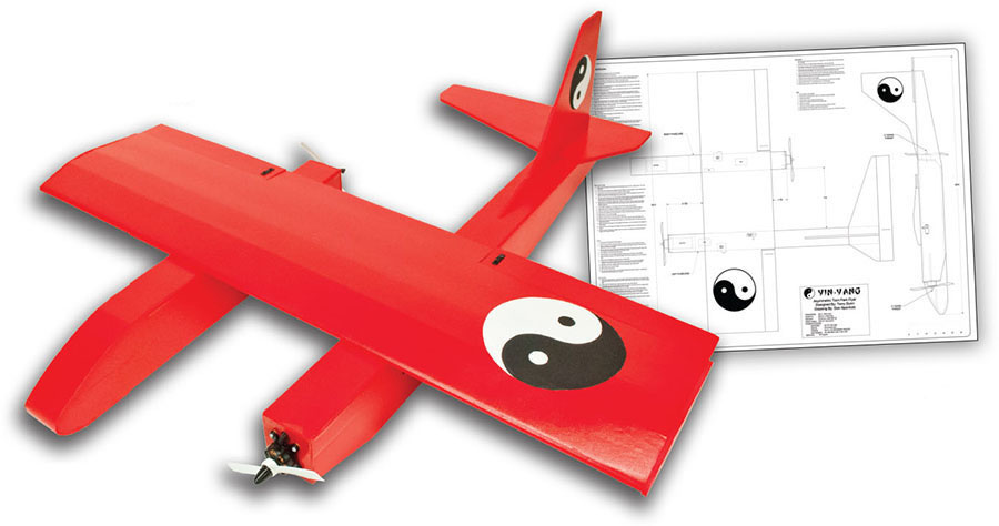 Velmi netradiční model z materiálu depron s výstižným názvem JIN-JANG. Plánek si můžete stáhnout na ~ tomto odkazu ~. Rozpětí modelu je 749 mm, váhově se bude pohybovat okolo cca 560 g.