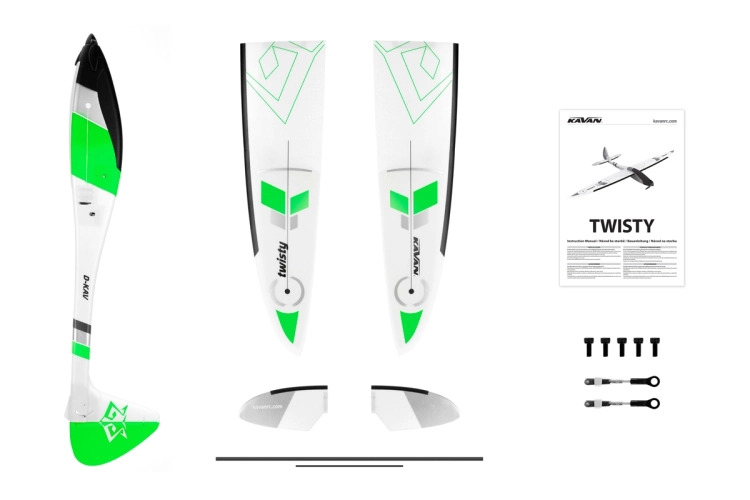 Akrobatický větroň Kavan Twisty využijete na malém plácku, na Vašem letišti, ale i svahu. Model má opravdu velké ovládané ocasní plochy a to je ve vzduchu na jeho obratnosti znát. Větroň je z uhlíkem vyztuženého extrudovaného pěnového polyolefinu (EPO). V modelu je střídavý motor C2820-1450, sklopná vrtule 7×6″, regulátor R-20B Plus a 4 mikroserva s kovovými převody. Ovládaná směrovka, plovoucí výškovka, plovoucí poloviny křídla a motor.