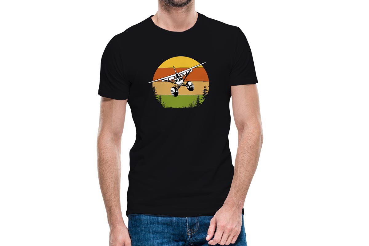 A motiv letadla kategorie STOL (short take off and landing) na tmavší podklady triček.