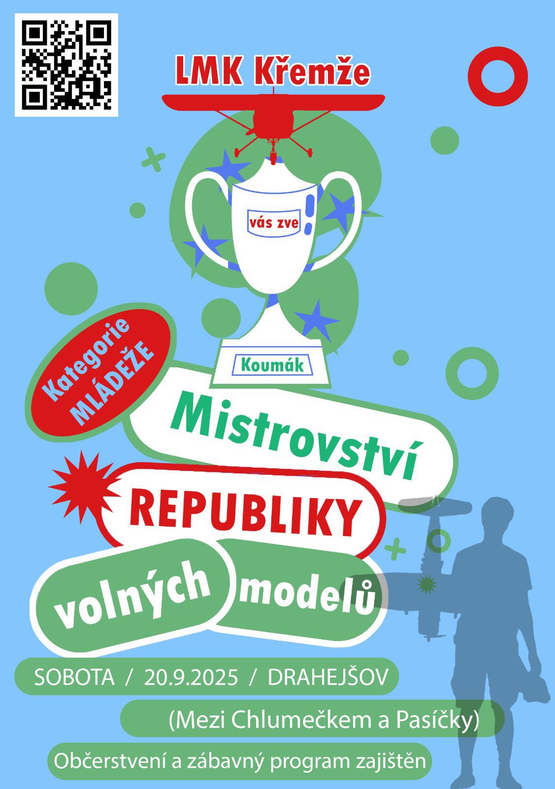 LMK Křemže pořádá v termínu 20.9.2025 Mistrovsví republiky volných modelů v kategorii mládeže.