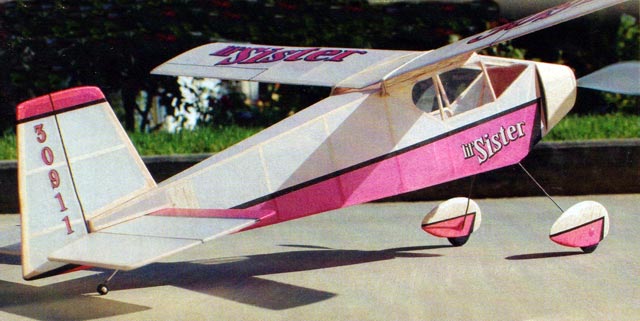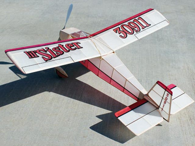 Plánek na model s pohonem gumového svazku s názvem Lil Sister si můžete stáhnout na ~ tomto odkazu ~. Model má rozpětí 406 mm a váhově se budete pohybovat v rozmezí 14 – 16 g. Popis v AJ je k dispozici ~ zde ~.