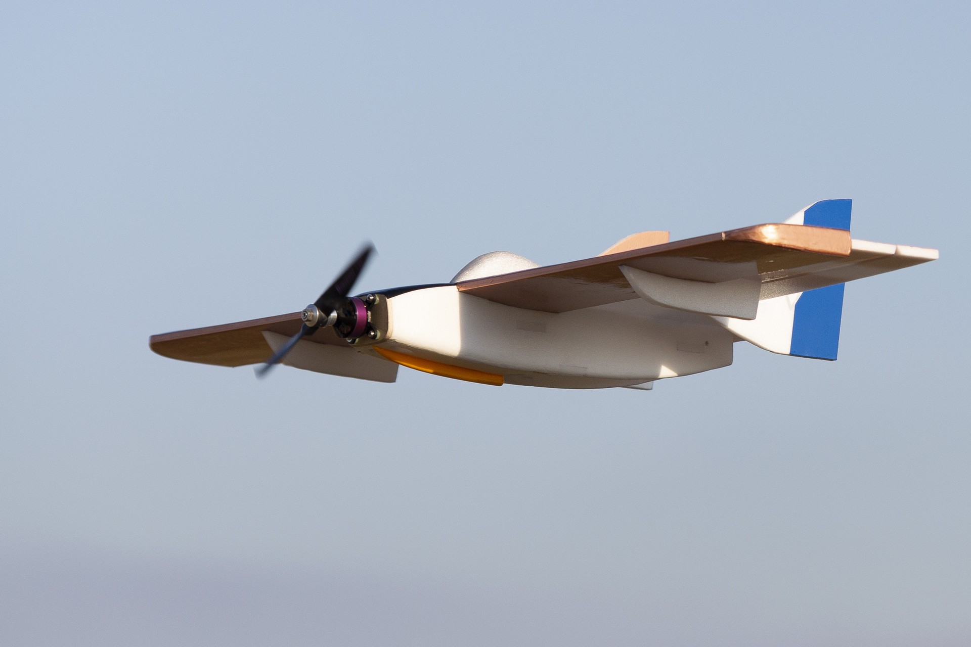 Zajímavé samokřídlo z oblíbeného materiálu depron (6 mm) nese název Wondep. Křídlo má rozpětí 650 mm, délku 370 mm a vejdete se do cca 250 g. Doporučovaný motor je např. Hacker A20-34S, nebo podobný ekvivalent s 1500-2000 kV, regulátor 20 – 25 A, pohonné baterie Li-Po 3S/500 – 800 mAh a 3 prcko serva. Ovládané funkce jsou výškovka, křidélka a motor.