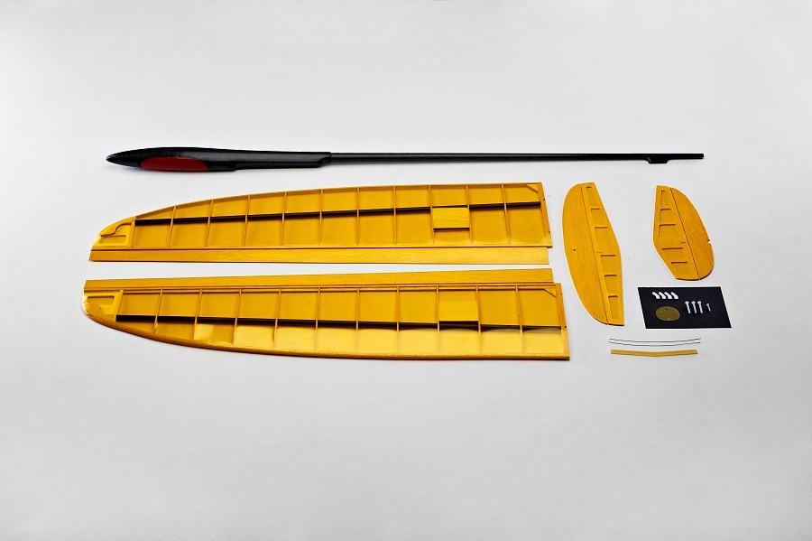 Stavebnice obsahuje trup, potažené křídlo, spojku křídla, potaženou směrovku a výškovku, 2 pružiny pro směrovku a výškovku, podložku pod výškovku, 4 plastové šrouby, 4 plastové páčky a obrázkový návod.