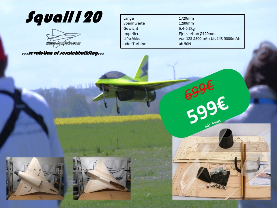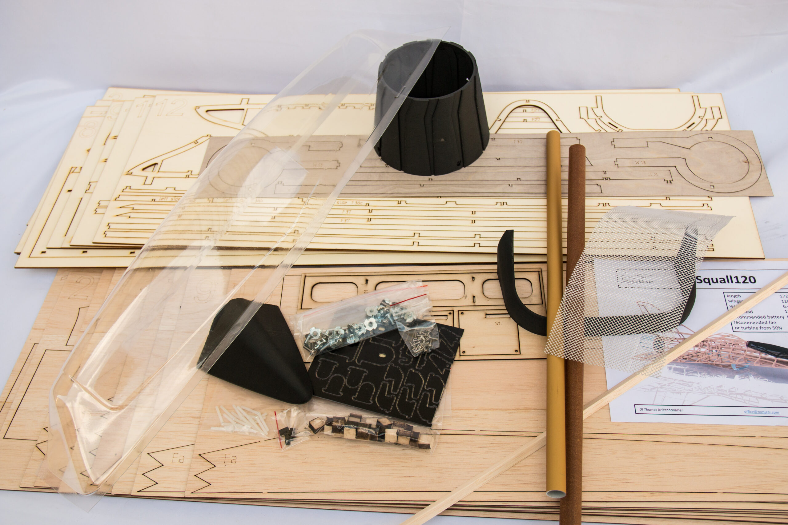 Konstrukční stavebnice cvičného letounu Squall 120 je řezaná laserem a tak se jedná o přesnou stavbu.
